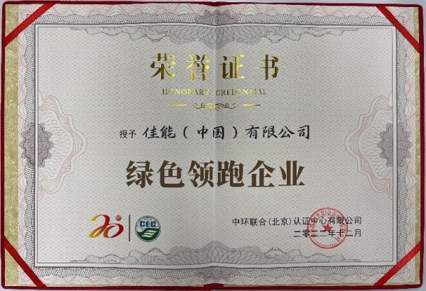 佳能(中國(guó))有限公司榮獲“綠色領(lǐng)跑企業(yè)”榮譽(yù)稱號(hào)