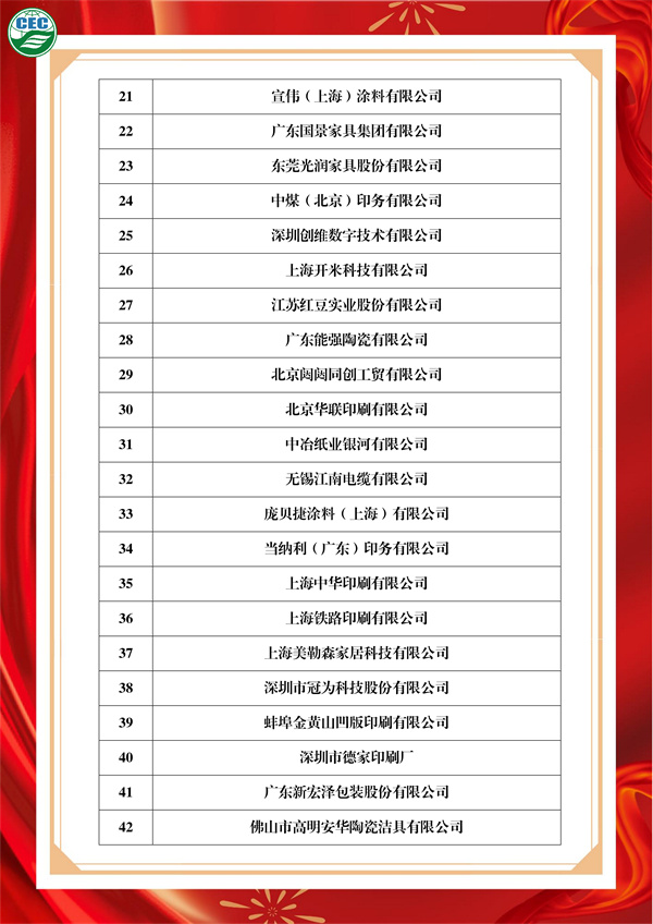 CEC20年 綠色領(lǐng)跑企業(yè)獲獎名單