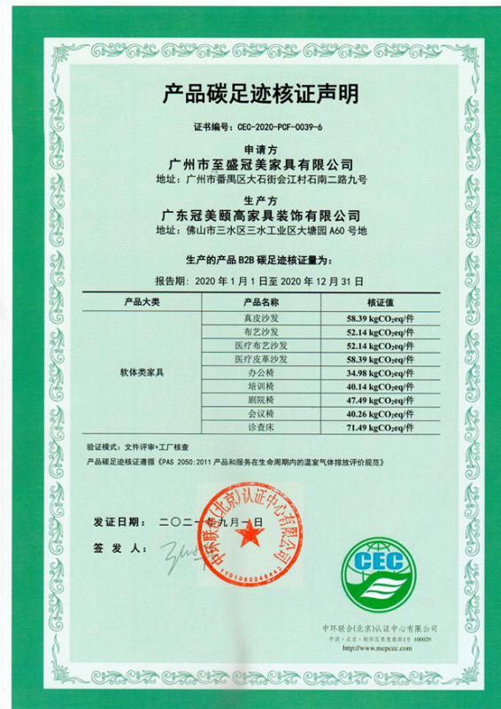下一篇:廣東冠美頤高家具裝飾有限公司碳足跡證書-CEC-2021-PCF-0039-5-金屬類家具