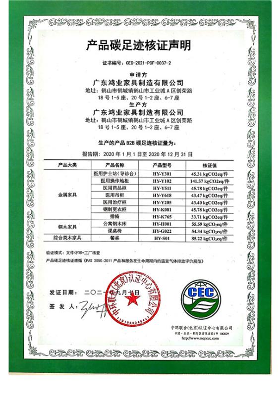 上一篇:廣東省鴻業家具制造有限公司碳足跡核證聲明-CEC-2021-PCF-0037-3-軟體類家具
