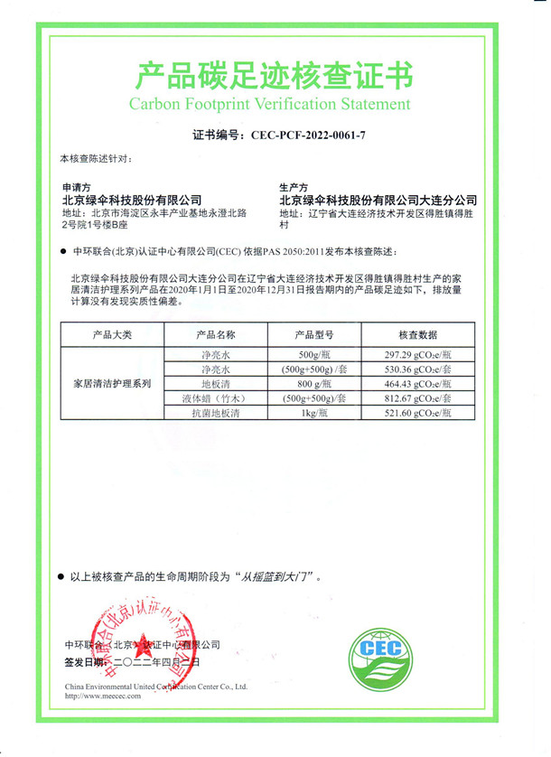 上一篇:北京綠傘科技有限公司大連分公司-CEC-PCF-2022-0061-8-個人清潔護理系列
