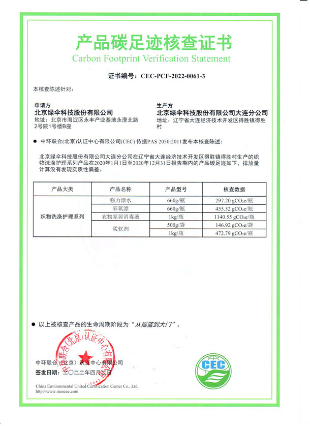 下一篇:北京綠傘科技有限公司大連分公司-CEC-PCF-2022-0061-2-織物洗滌護理系列