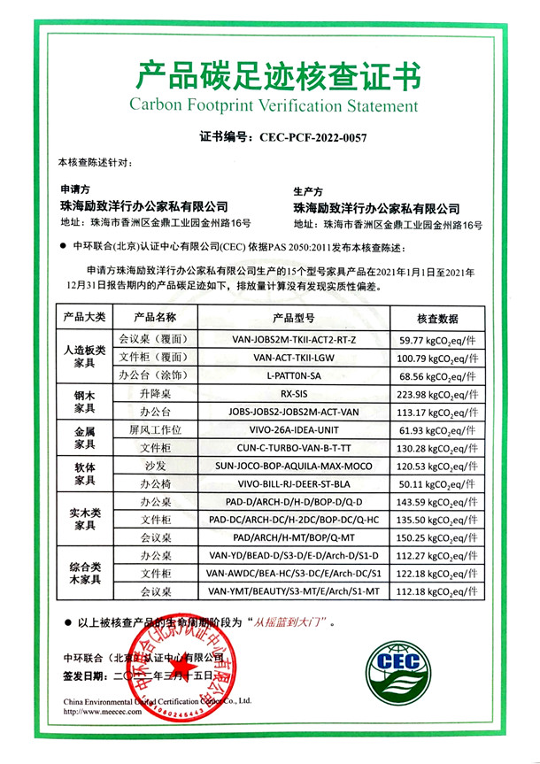 下一篇:洛陽(yáng)市宇龍辦公機(jī)具有限公司-CEC-PCF-2022-0068-2-金屬家具