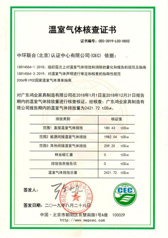 欄目:溫室氣體核查證書(shū)