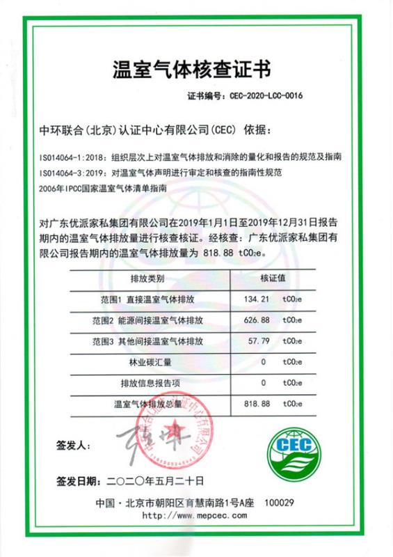 欄目:溫室氣體核查證書