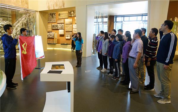 在塞罕壩展覽館內(nèi)幾代塞罕壩人艱苦奮斗的影像前,中環(huán)聯(lián)合支部黨員面對黨旗,高舉右拳,莊嚴宣誓,重溫入黨誓詞, 勵志不忘初心,牢記使命,增強“四個意識”,堅定“四個自信”,強化責任擔當,踐行“三嚴三實”,慎始慎終、慎獨慎微,涵養(yǎng)操守、端正品行,立黨為公、執(zhí)政為民,始終保持共產(chǎn)黨人清正廉潔的政治本色,不斷推動新時代中國特色社會主義事業(yè)的偉大勝利。