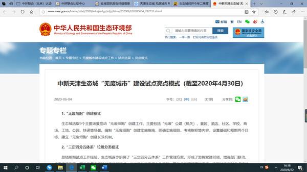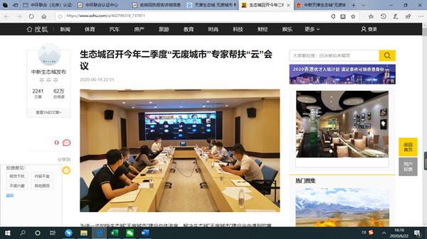 為推進“無廢城市”建設(shè)試點工作,生態(tài)環(huán)境部委托技術(shù)幫扶組于2020年6月18日組織召開了中新天津生態(tài)城(以下簡稱“生態(tài)城”)“無廢城市”建設(shè)試點技術(shù)幫扶視頻會。中環(huán)聯(lián)合承擔(dān)了生態(tài)城“無廢城市”建設(shè)中“綠色生活方式”創(chuàng)建的工作,作為牽頭部門,雙綠聯(lián)盟參會并匯報了創(chuàng)建的情況。