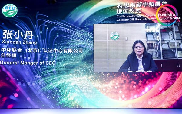 中環聯合張小丹總經理以視頻方式在授證儀式上致詞。她談到,本次碳中和活動,正值COP26會議召開,各締約方正在圍繞落實減排承諾,共同行動,以有效應對氣候變化帶來的危機和挑戰進行協商。科思創進行碳中和活動,不僅體現了外資企業積極響應中國碳達峰碳中和目標所進行的實踐行動,也傳遞了綠色低碳可持續發展的企業理念。中環聯合希望未來與科思創繼續合作,為應對全球氣候變化和綠色低碳發展做出更積極的貢獻。