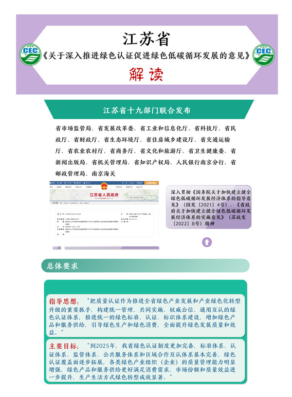 速覽 | 江蘇省十九部門聯合發文,多項內容涉及綠色認證