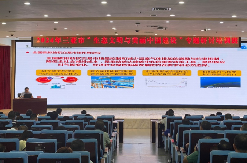 為全面貫徹黨的二十屆三中全會精神,深入學(xué)習(xí)習(xí)近平關(guān)于海南生態(tài)環(huán)境保護工作系列重要講話和指示批示精神,全面推進美麗三亞建設(shè),8月26-27日,三亞市委組織部、三亞市生態(tài)環(huán)境局聯(lián)合舉辦了2024年“生態(tài)文明與美麗中國建設(shè)”專題研討培訓(xùn)班。三亞市委各部門、市政府各單位,各區(qū)、育才生態(tài)區(qū),市屬國有企業(yè)等部門相關(guān)負責(zé)人參加培訓(xùn)。本次培訓(xùn)會采取專題培訓(xùn)和互動交流相結(jié)合的方式進行,授課老師圍繞“生態(tài)文明與美麗中國建設(shè)”主題,分別從保護生物多樣性、“雙碳”目標下產(chǎn)業(yè)綠色轉(zhuǎn)型與碳達峰碳中和路徑、生態(tài)環(huán)境分區(qū)管控相關(guān)政策解讀、生態(tài)環(huán)境領(lǐng)域項目資金申報與投融資等內(nèi)容進行專題培訓(xùn)。