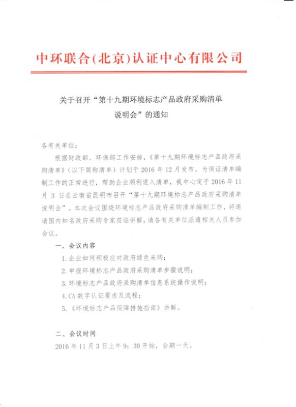 上一篇:關(guān)于召開印刷企業(yè)環(huán)境標志認證規(guī)則說明會的通知(成都)