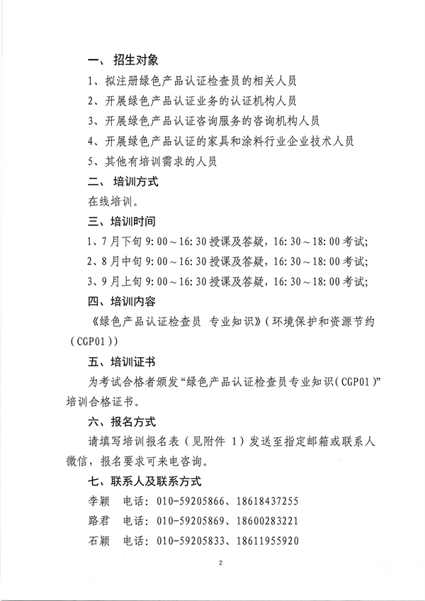 關于舉辦國家注冊綠色產品認證檢查員專業知識培訓的預通知