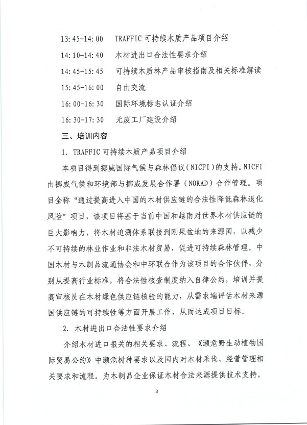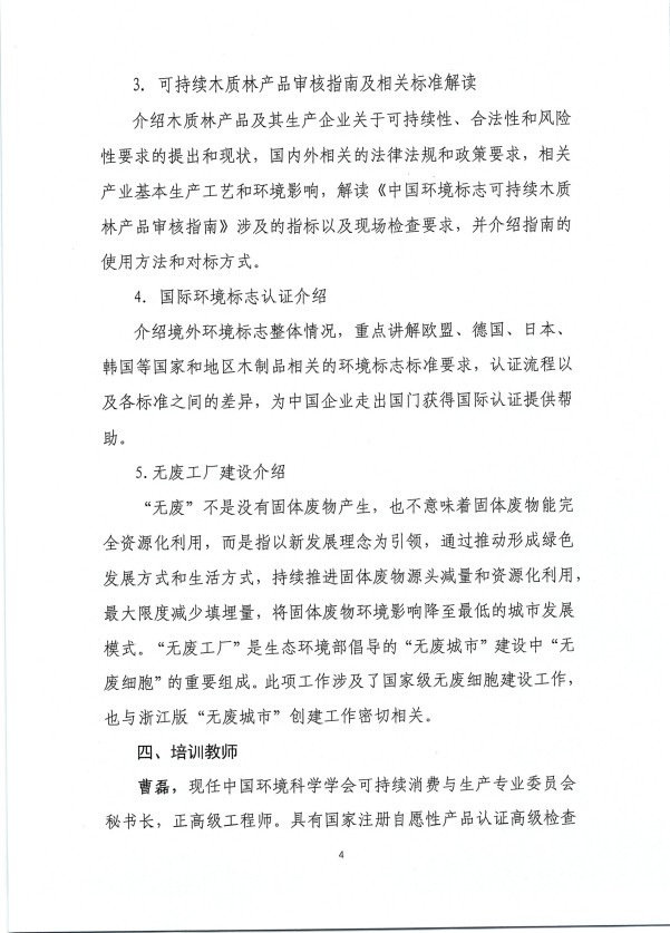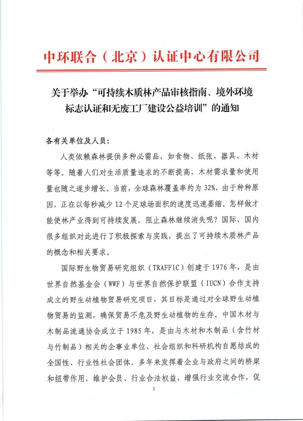 關(guān)于舉辦“可持續(xù)木質(zhì)林產(chǎn)品審核指南、境外環(huán)境標(biāo)志認(rèn)證和無(wú)廢工廠建設(shè)公益培訓(xùn)”的通知