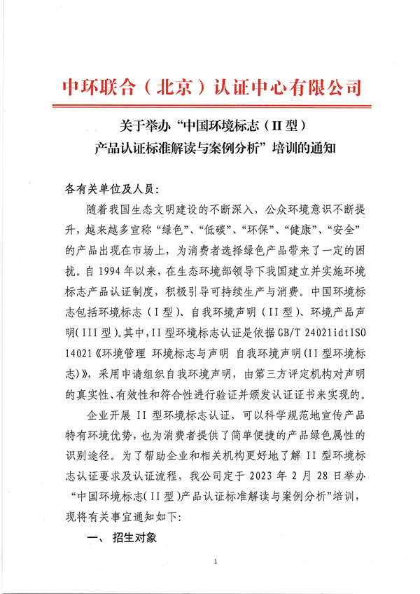 關(guān)于舉辦環(huán)境標(biāo)志(II型)產(chǎn)品認(rèn)證標(biāo)準(zhǔn)解讀與案例分析培訓(xùn)的通知