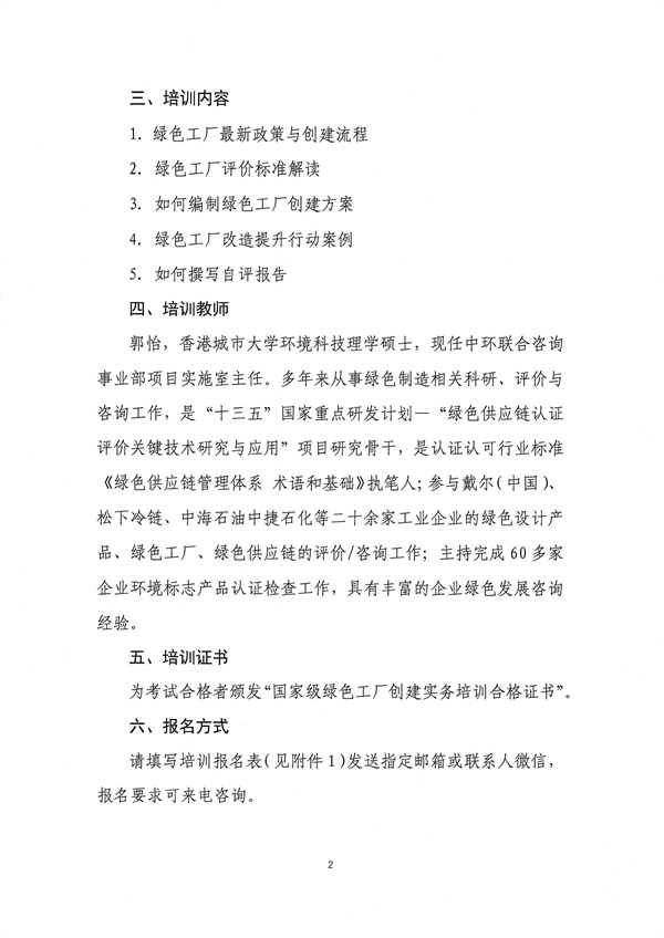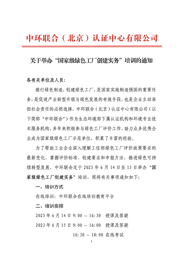 關(guān)于舉辦“國家級綠色工廠創(chuàng)建實務(wù)”培訓(xùn)的通知