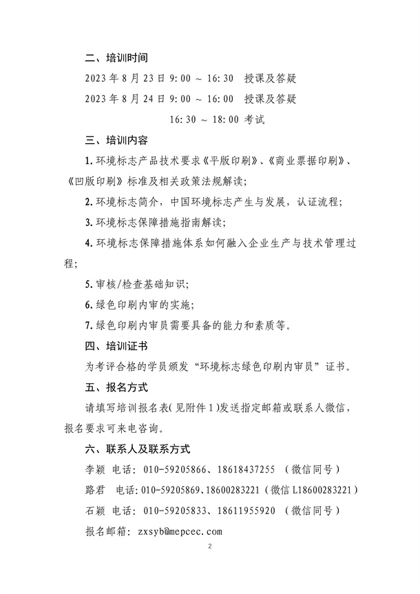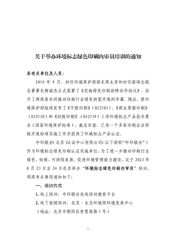 關(guān)于舉辦環(huán)境標(biāo)志綠色印刷內(nèi)審員培訓(xùn)的通知202308