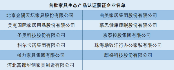 會上還發布了家具生態產品認證技術規范的團體標準,并為首批獲證企業頒發了生態產品認證證書。